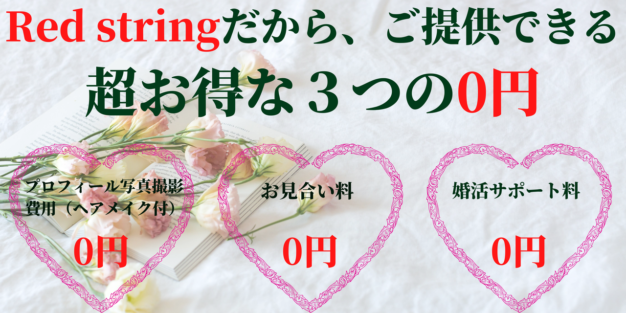 第一印象はお相手に選ばれる、最も重要なポイントです。お相手に好印象をあたえる素敵なお写真を実績のある提携スタジオにて撮影いたします。撮影費用は全額Red stringが負担、撮影の立会も無料で行います。